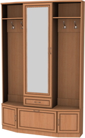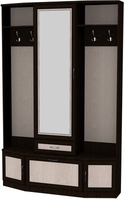 Для шкафа в прихожей очень важно наличие целого ряда функций. Особенно это важно, когда прихожая небольших размеров. В шкаф должно умещаться как можно больше вещей, обуви и различных аксессуаров. Мы предлагаем Вашему вниманию отличный вариант шкафа для прихожей, компактный и вместительный. В нем можно хранить достаточно много предметов одежды, обувь, необходимые для ухода за ними приспособления. Эта модель оборудована шестью большими секторами и выдвижным ящиком. Два сектора отведены под вешалки для верхней одежды. Среднее отделение закрыто дверью с большим зеркалом, что, несомненно, очень удобно и привлекательно. В нижних отделениях отлично расположится обувь и мелкие предметы. Все, что нужно спрятать, с легкостью уместится в выдвижном ящике и за закрытыми дверцами секций.