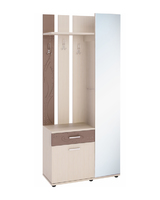 «Гармония 14.10» – компактная и многофункциональная модель мебели для прихожей в современном стиле. Несмотря на небольшую ширину прихожей, всего 900 мм, в ней легко можно разместить верхнюю одежду, как в открытом модуле, так и на панели с крючками. «Гармония 14.10» выполнена в комбинированном цвете и декорирована рисунком с серебряным тиснением, что придает прихожей легкость и оригинальность.