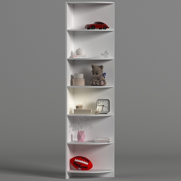 Высокая радиусная консоль , позволит разместить множество красивых предметов интерьера , книги , игрушки , фоторамки и не займет при этом много пространства. Отлично подойдет как завершение к шкафу для одеджы.