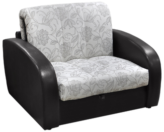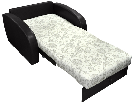 Cтильное кресло- кровать. Ровное спальное место. Возможность использования в качестве центрального объекта интерьера. В основании спального места металлический каркас с поддерживающими деревянными латами и механизмом трансформации «аккордеон». Матрас на эластичном ППУ. Съемный чехол спального места. Спальное место формируется следующим образом: цокольная часть сиденья выдвигается вперед до упора, спинка, состоящая из сложенного листового пенополиуретана, раскладывается. Для трансформирования не требуется расстояние между стеной и диваном. Подлокотникики и спинка съемные.