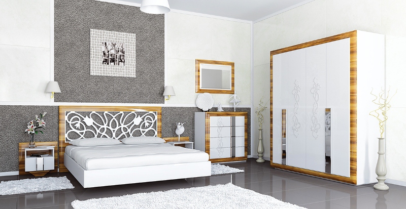 Спальня «Лотос» воплощение изящества и спокойствия, сочетание современного дизайна и классики. Художественный декор в головной спинке кровати создает ощущение сказки, таинственной атмосферы восхитительной, загадочной и романтичной Италии.
