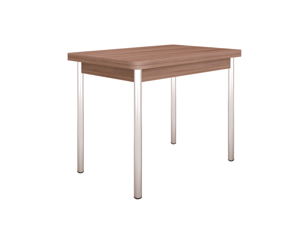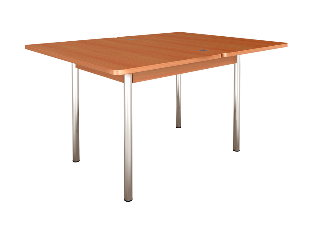 «Орфей 1.1» – обеденный стол с возможностью увеличения столешницы в 2 раза. Вместительную нишу для хранения кухонных мелочей оценит любая хозяйка, а металлические стоевые подчеркнут современный стиль обеденного стола.
