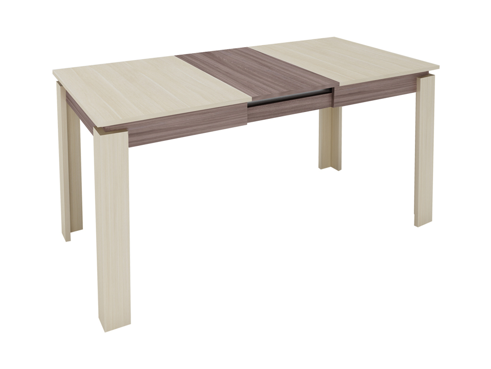 «Орфей 16.1» – это обеденный стол, выполненный в оригинальном цветовом решении – контрастном сочетании двух оттенков ЛДСП. Благодаря механизму синхронного раздвижения столешницы и наличию двух вставок, стол увеличивается в длину на 40 и на 80 см.