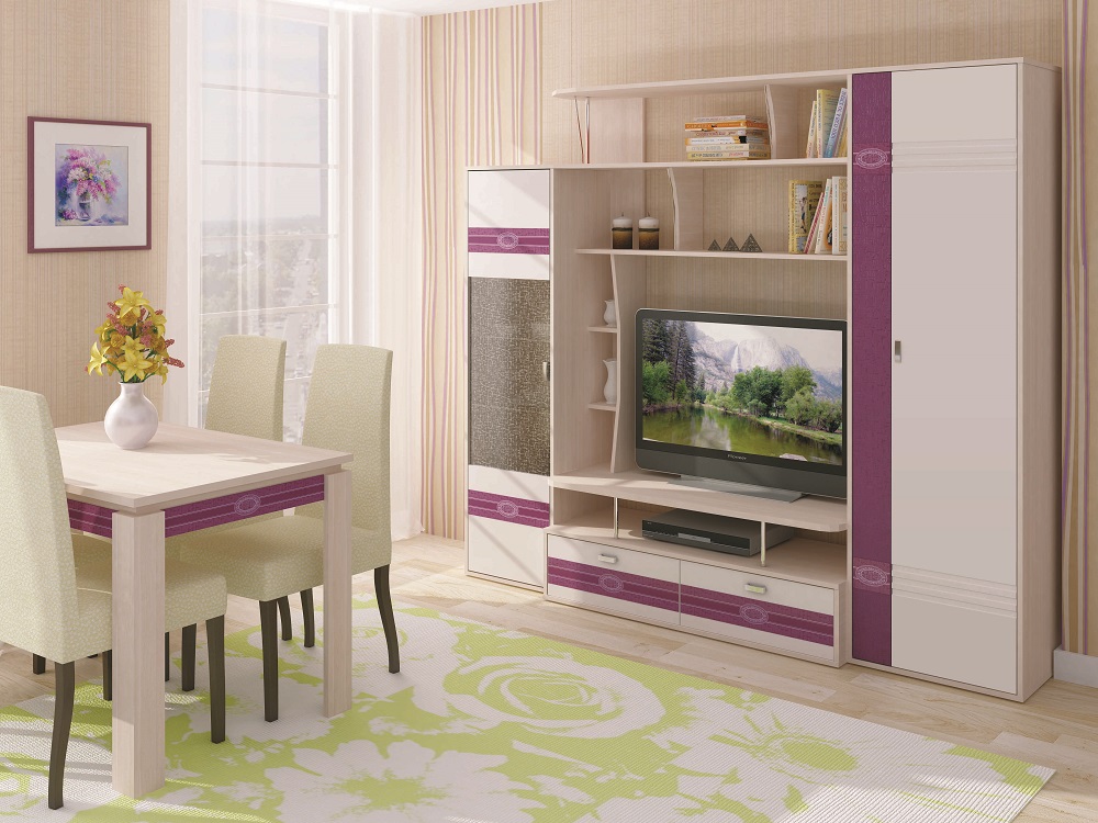 «Симфония 6.12» – это современная гостиная с эффектным рисунком на стеклянных вставках. Контрастное сочетание цветов подчеркивает ее оригинальность и индивидуальность.