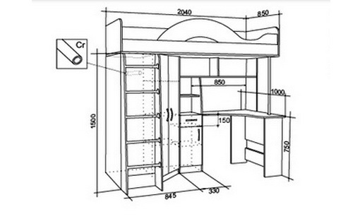Под кроватью размещена удобная рабочая зона.