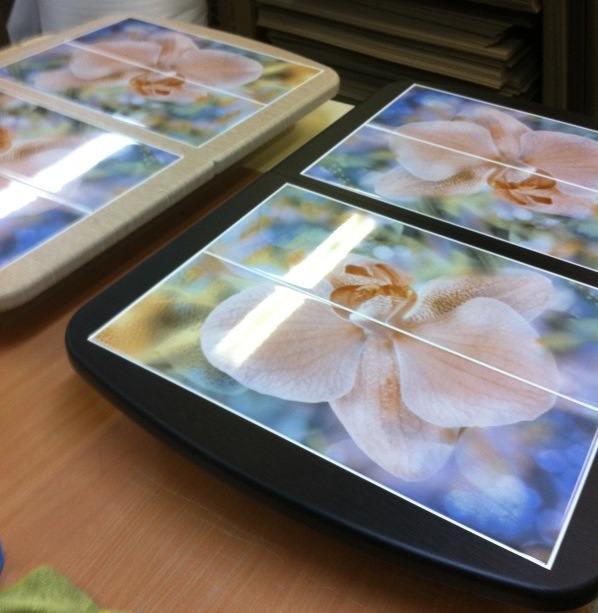 Также данную модель стола можно изготовить с матовым стеклом в девяти цветах (кремовый, лиловый, оранжевый, голубой, коричневый,бордовый, зеленый, черный, серый), и с графическим рисунком.